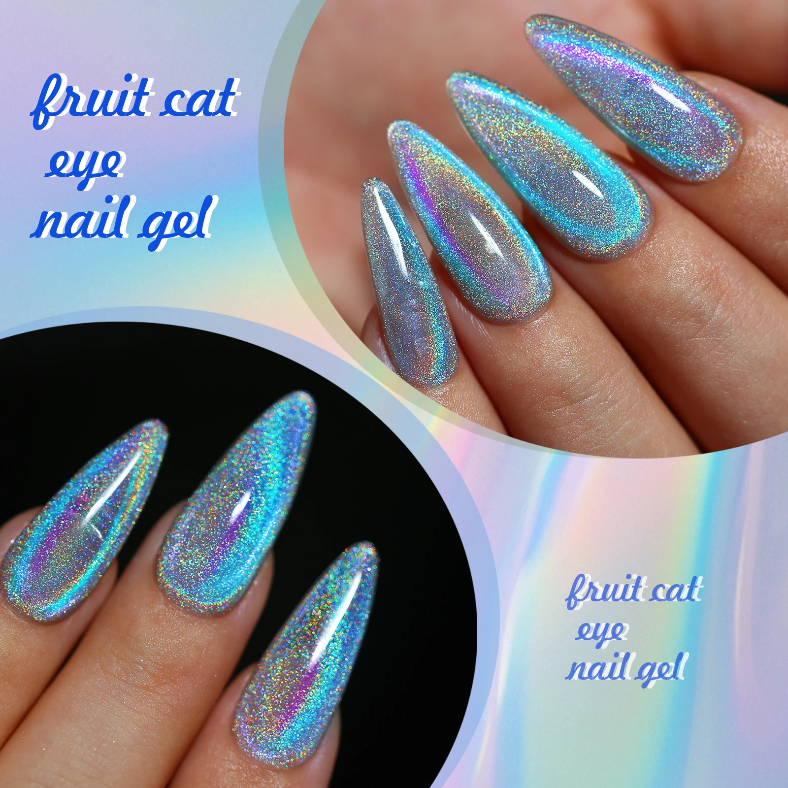 15ml Rainbow Cat Eye Magnetic Gel Nail Polish Colorful Laser Sparkling UV LED Semi Permanent Gel Can Be Use On Any Color Gel quantity