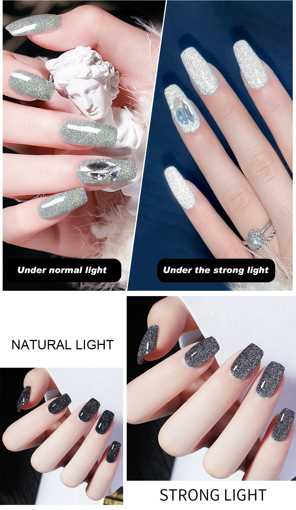 - Color Types: Reflective Glitter Gel Nail Polish