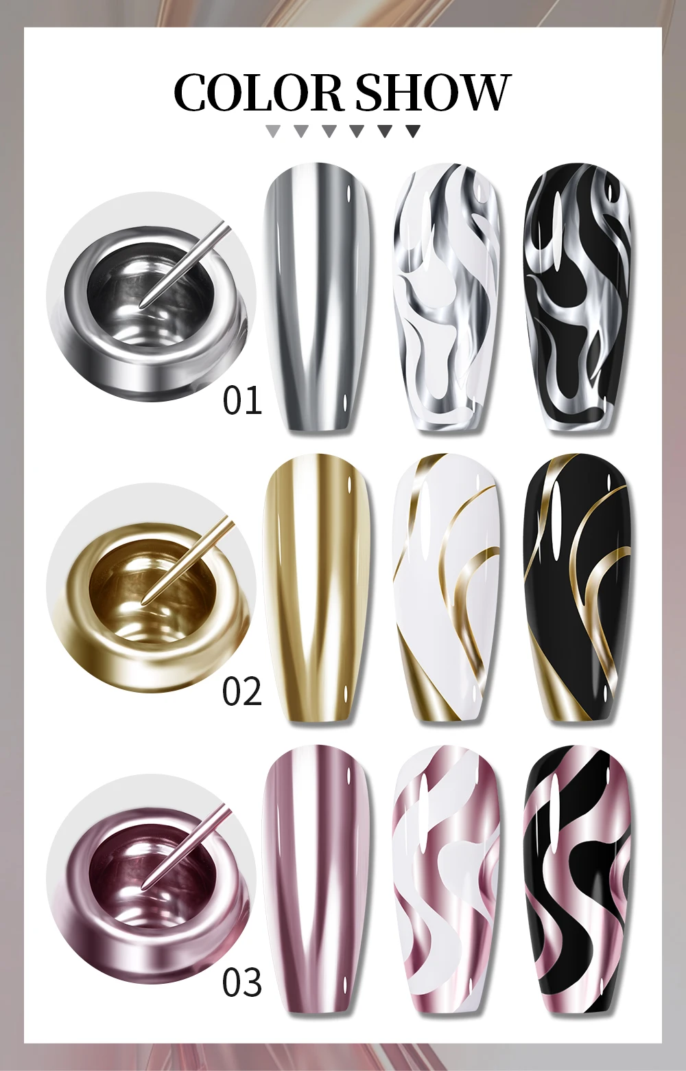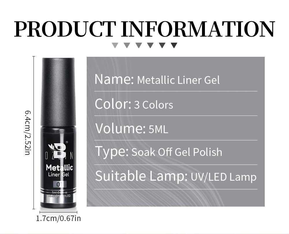 5ML Gold Silver Metallic Liner Paint Gel Polish Chrome Mirror Metal Effect Super Bright French UV LED Semi Permanent Nail Gel