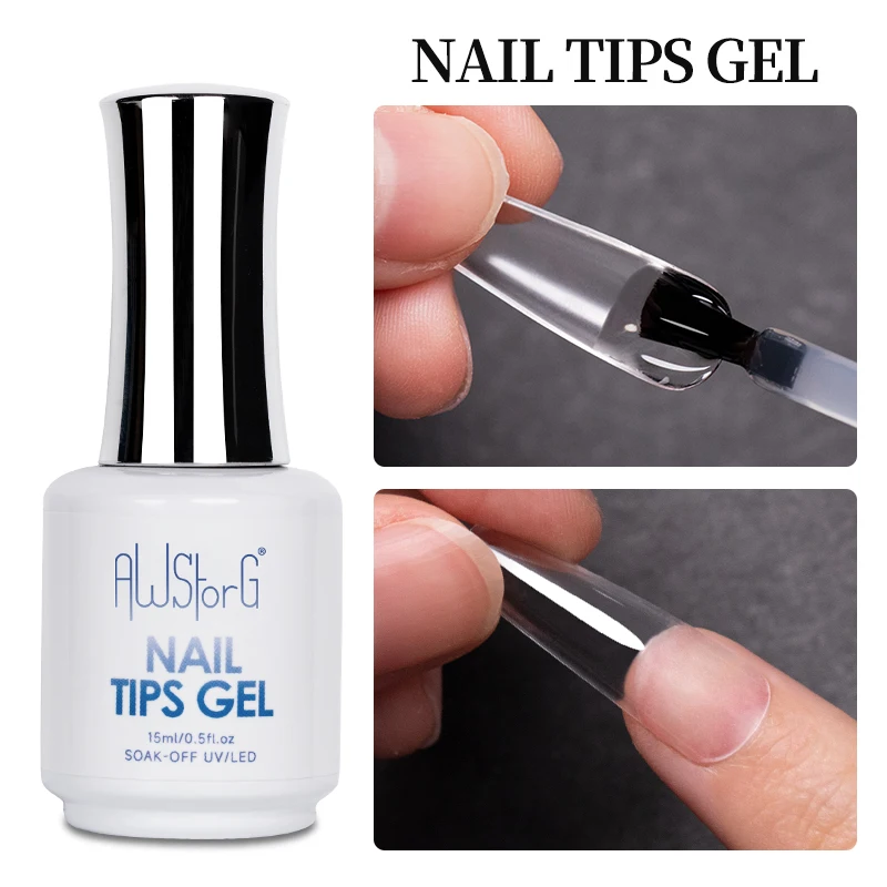 AWStorG 15ML Nail Tips Glue Gel For Falses Nail Tips Fast Extension 3 IN 1 Function Nails Art Transparent Gel Polish Soak Off UV
