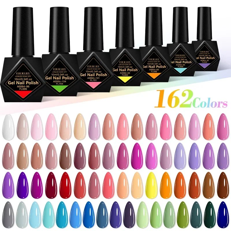 FOUR LILY 10ml 162 Colors Gel Nail Polish Colorful Semi-Permanent Soak Off Gel Nail Art Varnish Manicure for All-Season