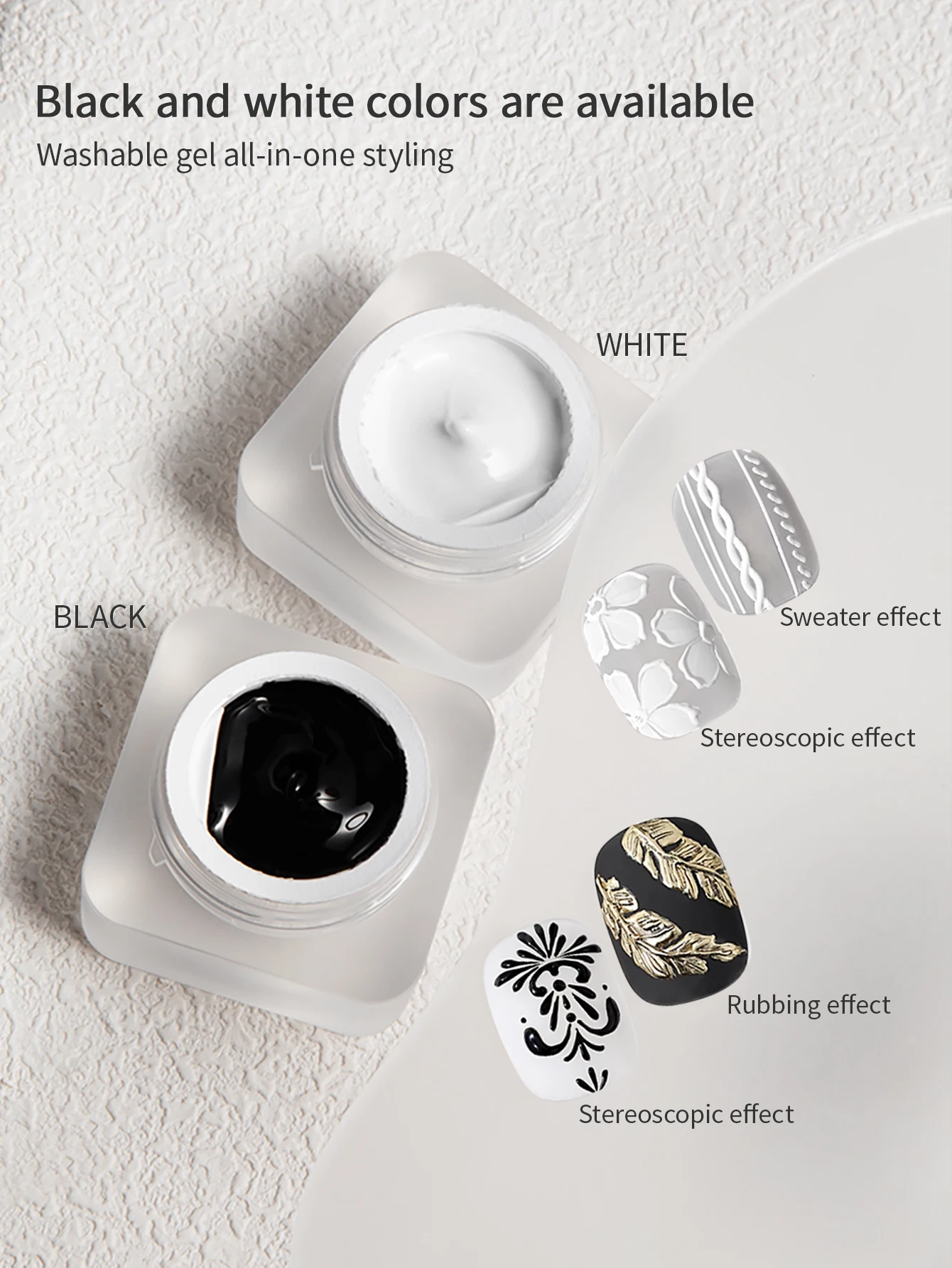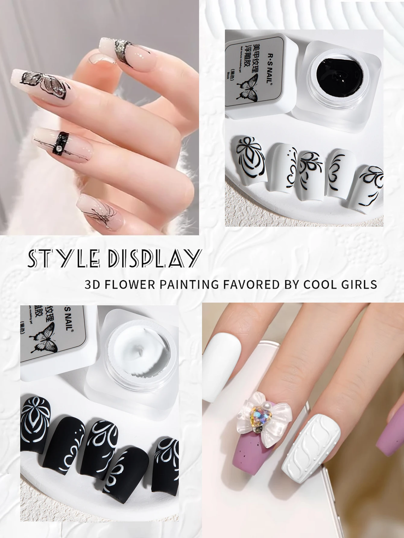 RSNAIL 5g Painting Embossed Gel Nail Polish 3D Black White Nail Art Plaster Texture Gypsum Drawing Carving Gel DIY Manicure Tool